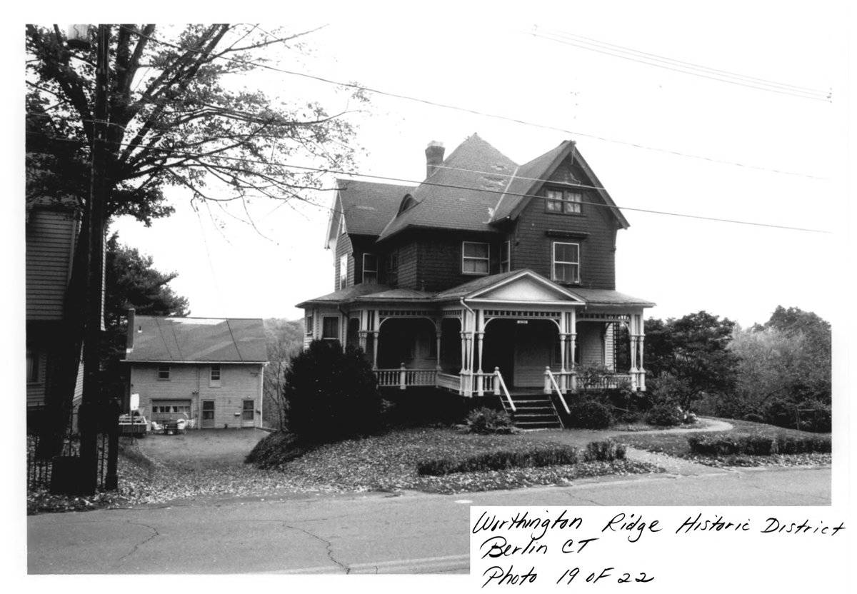 Charles A. Gillin House, 1035 Worthington Ridge, c.1895. This house is a good example of a Victorian Vernacular dwelling. It is a large house with an array of ornamental woodwork and ornate front and rear porches. Such detail was made more affordable by 19th century advances in wood forming technology. Such ornate features became very popular 1860-1900. (Source: Berlin Historic District Walking Tour. http://www.town.berlin.ct.us/content/197/477/503/default.aspx) Contributing resource in the Worthington Ridge Historic District.