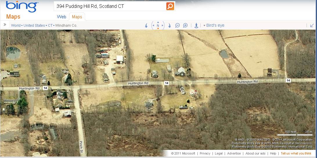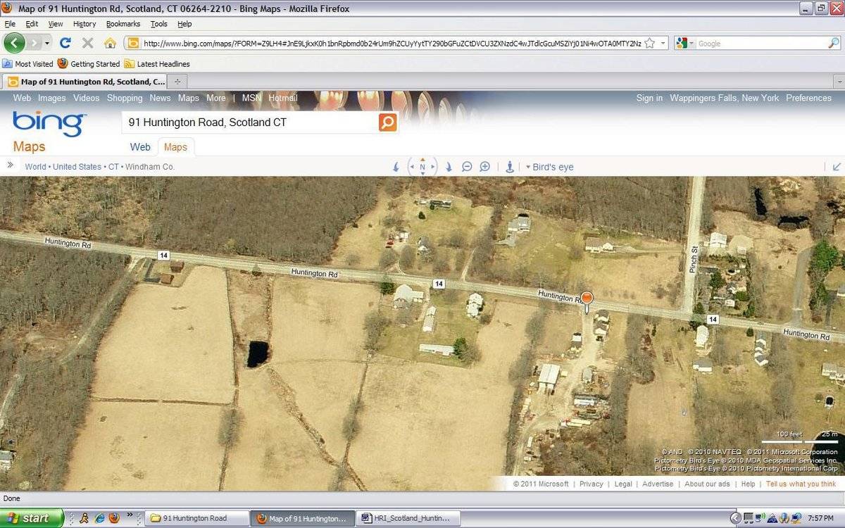 This property is located just west of the center in the Town of Scotland, in a rural residential area with a few scattered farms. The barn is located on a 32.0 -acre parcel that is bordered by Huntington Road (CT Rt. 14) to the north. In addition to the carriage house, the property also features three minor outbuildings and a c. 1875 residential structure.