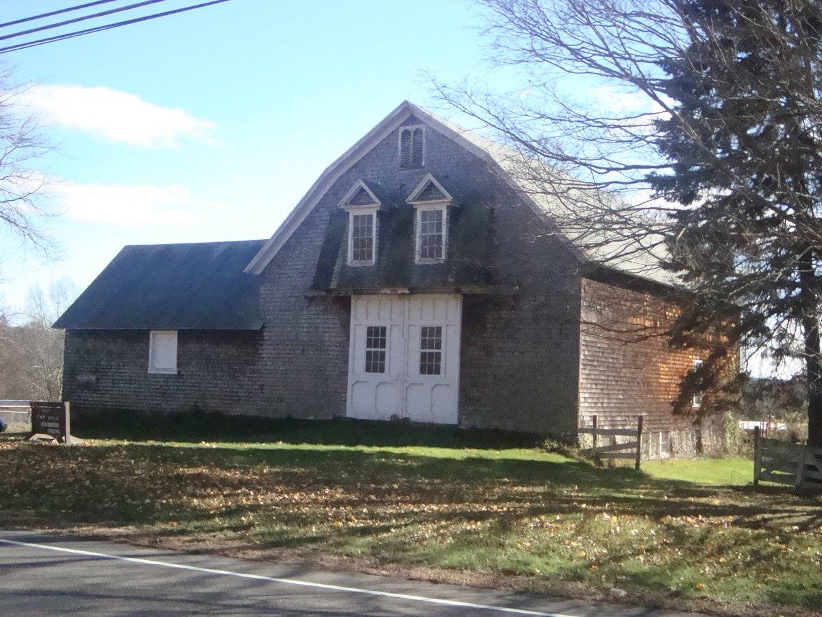 This is a 1 ½-story gable-entry carriage-house with a gambrel-roof. The main façade faces north and its ridge-line runs north-south, perpendicular to Huntington Road, which lies to the north. Along the northern half of the east eave-side of the barn is a 1 ½-story gable-roof addition with two bays. Its ridge-line runs east-west, perpendicular to that of the original structure.