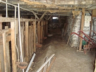 To the southeast of the house are two agricultural structures. The first is a small 1 ½-story gable-roof structure with a rectangular-shaped plan and a shed-roof addition on its west eave-side. Its ridge-line runs north-south. In the center of its north gable-end is a double-hung window with trim. On its east eave-side are two window openings that appear to be covered with plywood. Directly to the south of this structure is a 1 ½-story gable-roof structure with a rectangular shaped plan. Its main façade appears to face west, and its ridge-line runs north-south. To the south of the barn is a third agricultural structure with a rectangular shape plan. This structure appears to have a gable-roof with an east-west orientation.