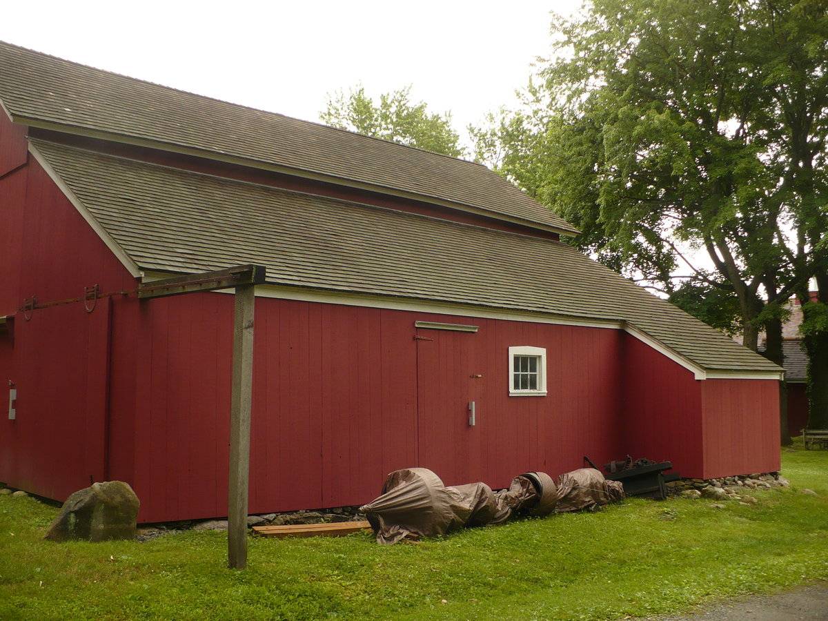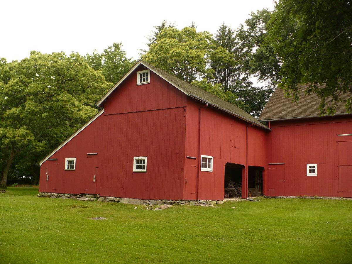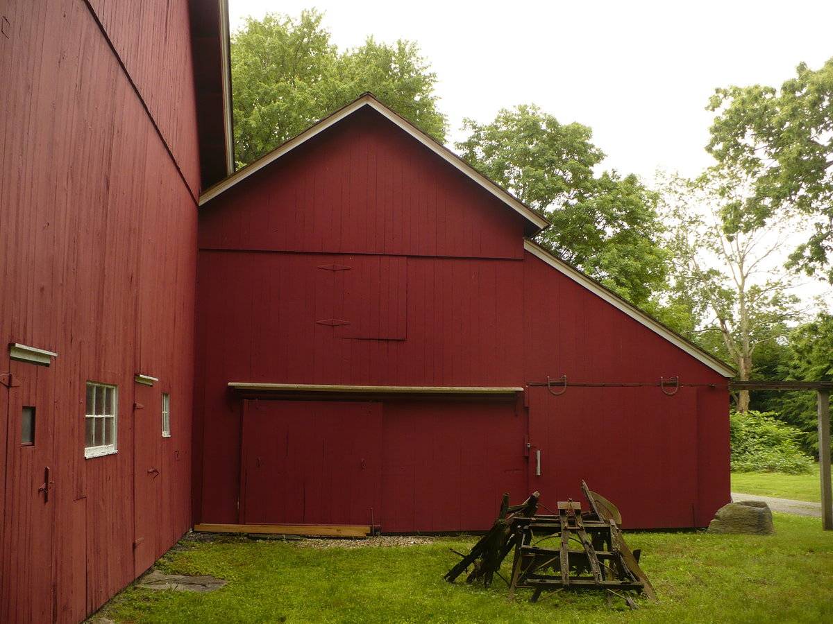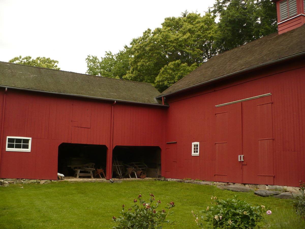 Large complex of numerous barns, a carriage house, a smoke house and a few privies. The English barn on the property was built in 1883 to replace a similar barn on the site that was destroyed by fire in 1882. "The homestead dates back to the early 19th century and once included more than 100 acres of farmland and meadows roughly bounded by Weston Road on the east, Broad Street on the south, Briar Oak Road on the north and Cavalry Road ono the west. The Homestead today is 3.7 acres and includes the Coley farmhouse (circa 1841), a large barn and cattle shed (circa 1880), a carriage house (circa 1840), several small out buildings and a cider press shed built by the Society in 1993. The homestead was established in 1834 by David Dimon Coley on 15 acres of land leased from his father, Eliphalet Coley. David later purchased and inherited additional acreage from his father and father-in-law, John Andrews. Five generations of the Coley family occupied the Homestead for 167 years, and for much of that time, worked it as a farm, raising livestock and growing both cash and feed crops." http://www.westonhistoricalsociety.org/
