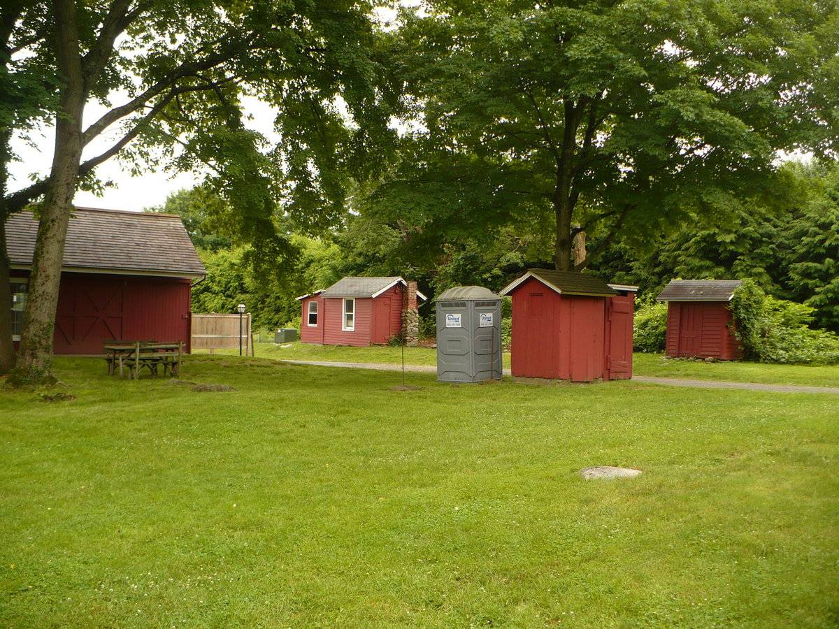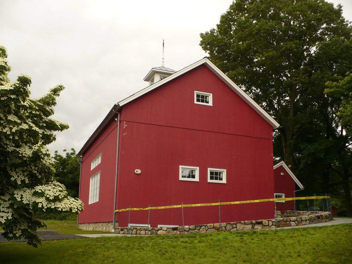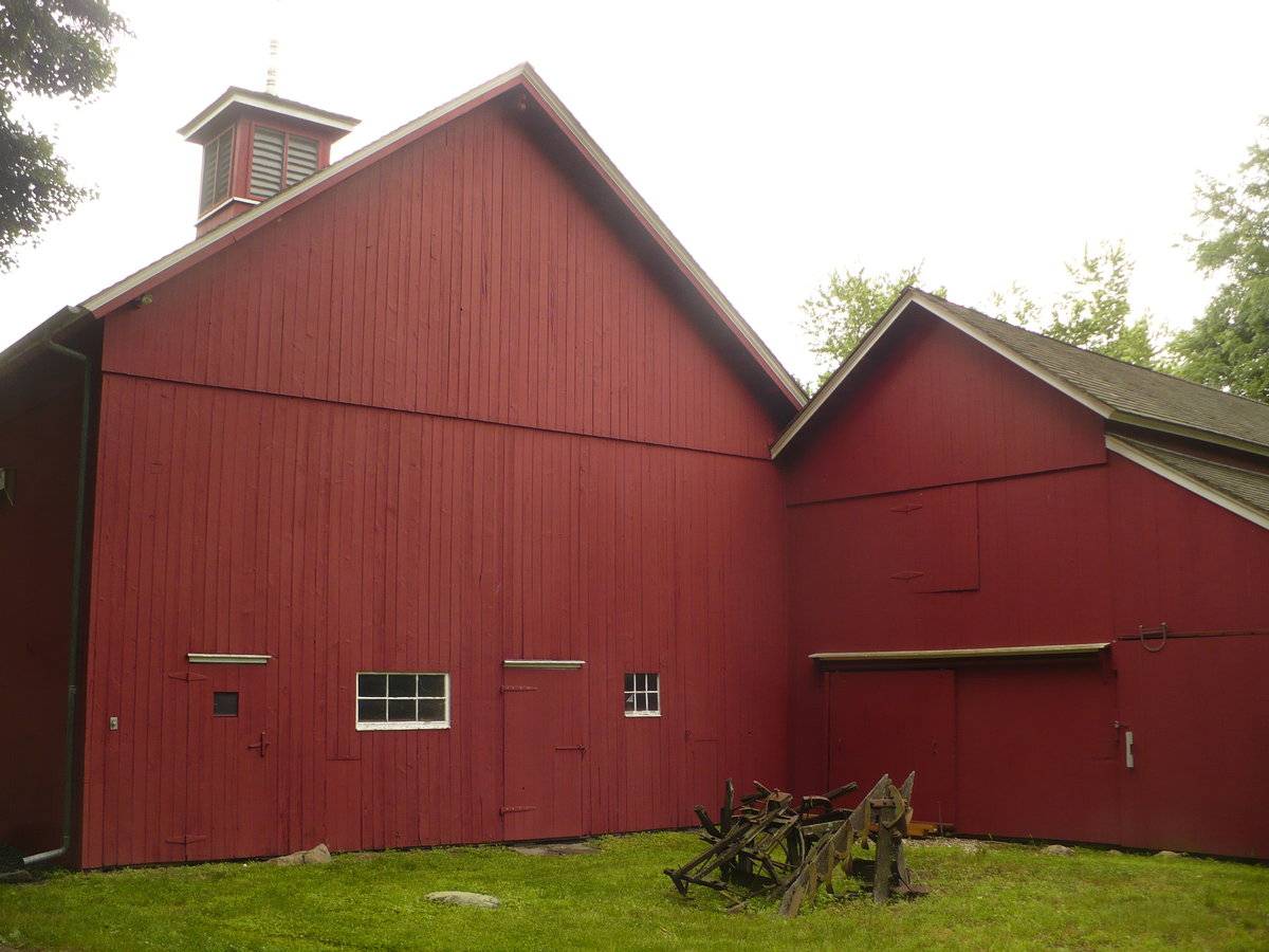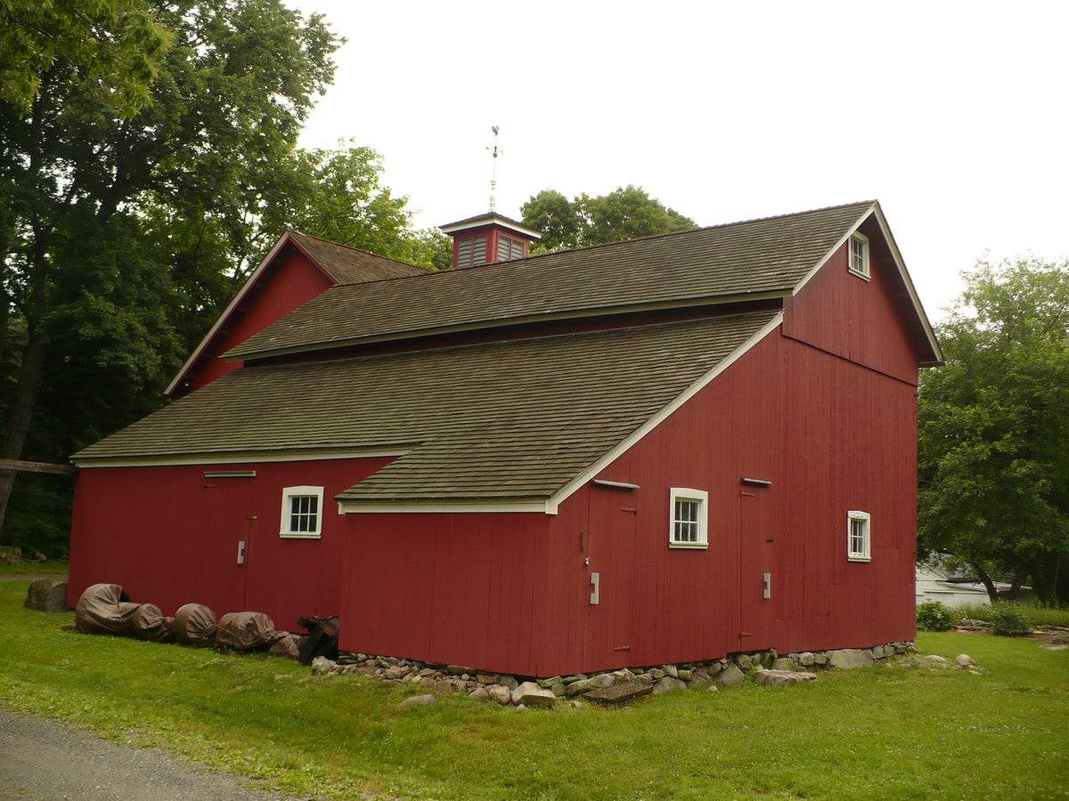 Large complex of numerous barns, a carriage house, a smoke house and a few privies. The English barn on the property was built in 1883 to replace a similar barn on the site that was destroyed by fire in 1882. "The homestead dates back to the early 19th century and once included more than 100 acres of farmland and meadows roughly bounded by Weston Road on the east, Broad Street on the south, Briar Oak Road on the north and Cavalry Road ono the west. The Homestead today is 3.7 acres and includes the Coley farmhouse (circa 1841), a large barn and cattle shed (circa 1880), a carriage house (circa 1840), several small out buildings and a cider press shed built by the Society in 1993. The homestead was established in 1834 by David Dimon Coley on 15 acres of land leased from his father, Eliphalet Coley. David later purchased and inherited additional acreage from his father and father-in-law, John Andrews. Five generations of the Coley family occupied the Homestead for 167 years, and for much of that time, worked it as a farm, raising livestock and growing both cash and feed crops." http://www.westonhistoricalsociety.org/