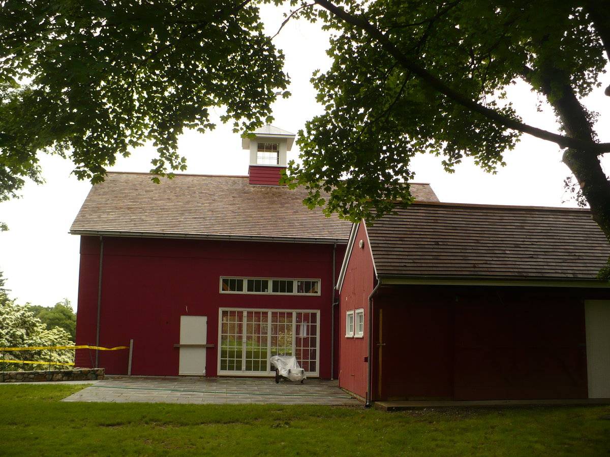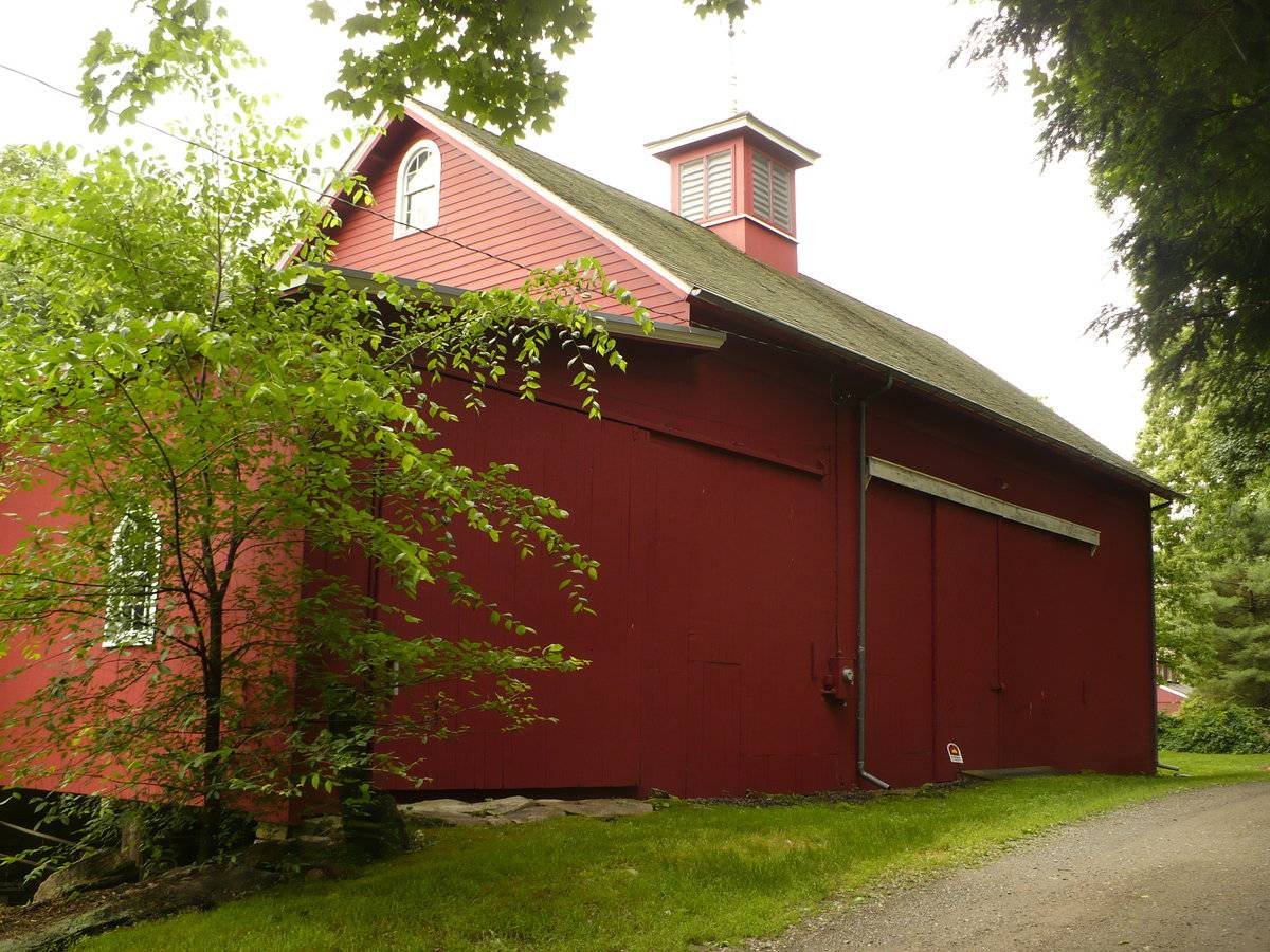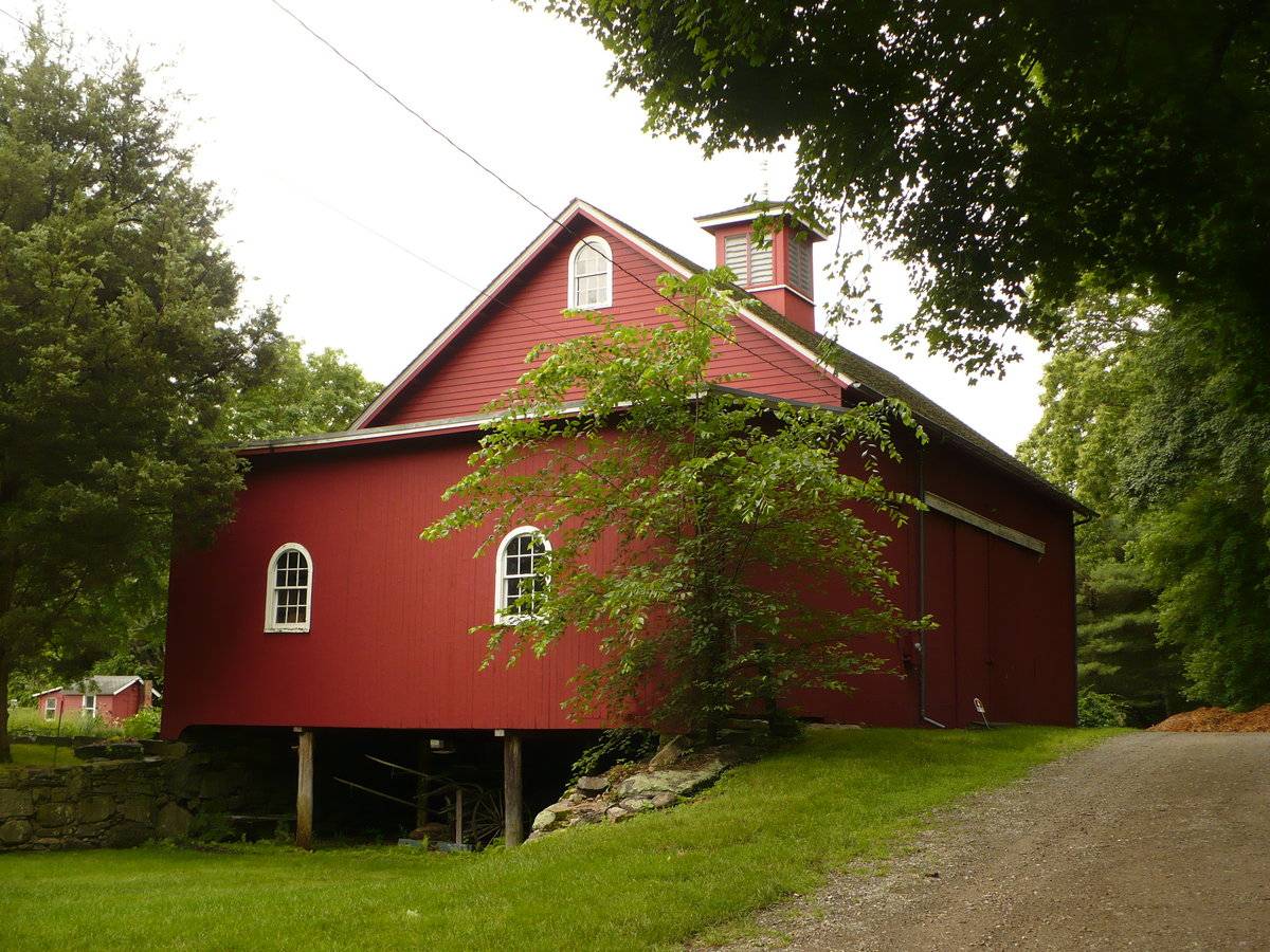 This barn sits on 3.71 acres and is part of the Weston Historical Society property. The house with which this barn is associated sits close to the road on a hill, just to the southwest of the barn. The main façade faces east and the ridge-line runs perpendicular to Weston Road. The driveway extends to the west off Weston Road and bends to the south, leading to High Acre Road. A parking lot sits to the east of the driveway. A large English style barn with a large saltbox-roof addition sits directly to the west of the carriage barn. To the southwest, just south of the large English barn is a large recently built barn, which is attached to a shed. A few small outbuildings are located at the west of the property. The south portion of the property is an open tract of land. Stone walls boarder the property on the east and north of the property. Along the west side of the property is a boarder of coniferous trees. Just to the southeast of the property is the intersection of Weston Road and High Acre Road, Weston Road and Pink Cloud Lane, and to the north is the intersection of Weston Road and Kettle Creek Road. To the north of the property is Weston Parks and Recreation Center and Weston Shopping Center. Further north is Hurlbutt Elementary School, Weston School Superintendent, Weston Intermediate School, and Weston Middle School. To the northwest is Cobbs Mill Pond and Bisceglie Park. To the south is Coleytown Cemetery and Held Pond. The property is surrounded by residential areas and woodland.