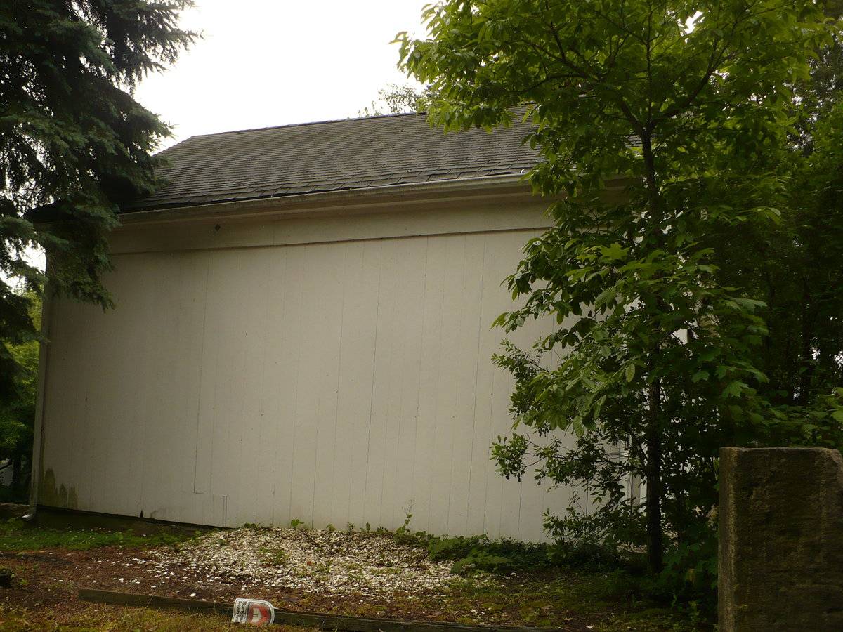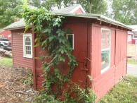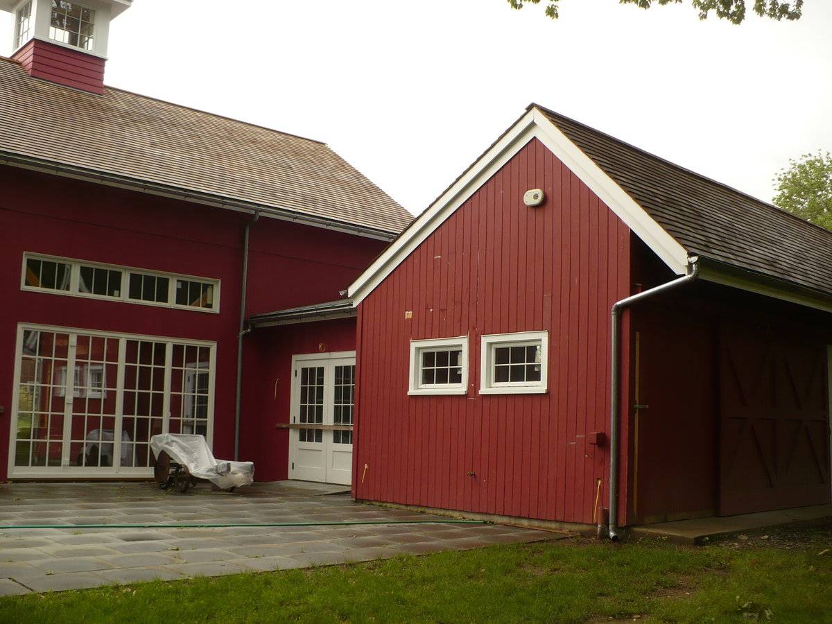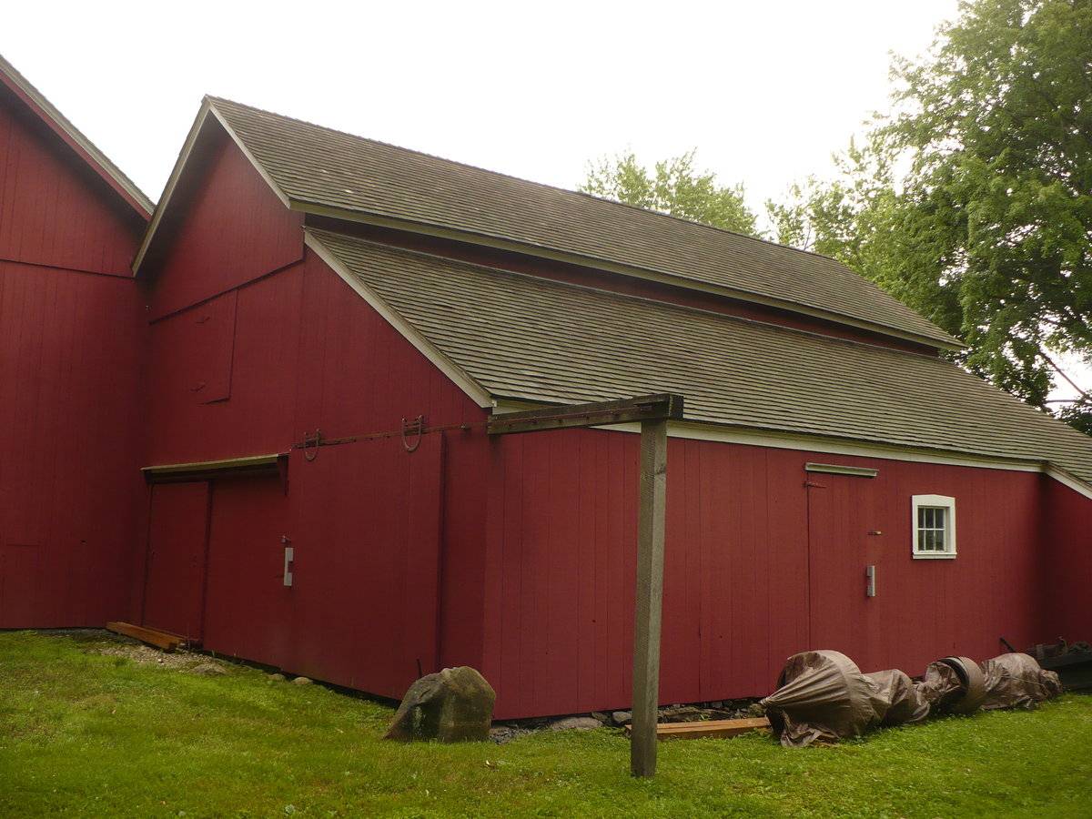 This is a 1 ½-story gable-entry, gable-roof, carriage barn with a shed-roof addition. The main façade faces west and the ridge-line is perpendicular to Weston Road, which at this point runs approximately north to south.