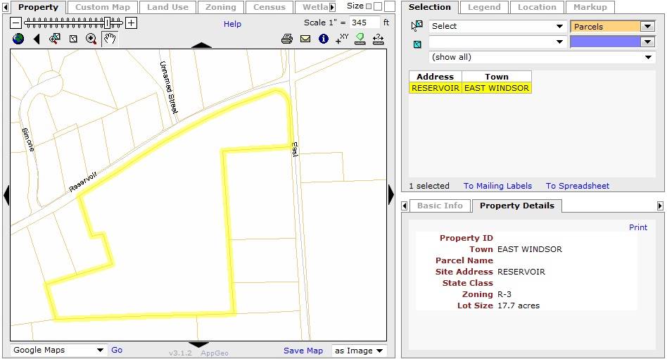 The 17.7 acres property, Map number –27 57 016-01, is a corner plot towards the south of Reservoir Road and the west of East Road. It is situated in a residential area of rural character, surrounded by parcels of farm land. A few tobacco sheds can be seen towards the north of the property across Reservoir Road while residential plots can be seen towards the north-west, south-east and east across East Road. Farmland with barns can also be seen towards the east while dense woodland surround the property on its south-west and south.