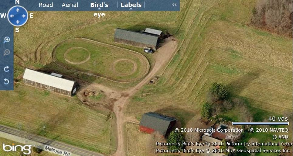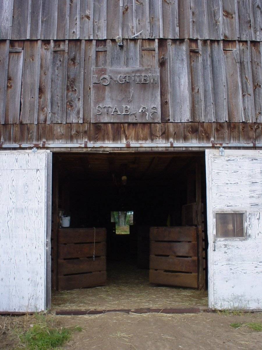 Barn-II: This is a 1 ½ - story gable-entry barn with its south eave-side facing Melrose Road. The main façade of the barn is the east gable-façade with the main entrance at the center through a pair of exterior-hung sliding wagon doors. The northern door leaf of the main entrance is relatively wider and has a square window insert towards the south. A sign board displaying the name of the barn as ‘Longview stable’ can be seen centered above the main entrance. The barn has wooden gates guarding the main wagon door entrance. The barn has evidences of additional ventilation through the siding on the main east gable-side. The gable attic above is separated from the rest of the main east gable-façade of the barn by a distinct girt siding divide line. The south eave-side of the barn has ten stable windows with two windows closed placed at the center and the remaining eight windows equally spaced towards either edge, four on each side.