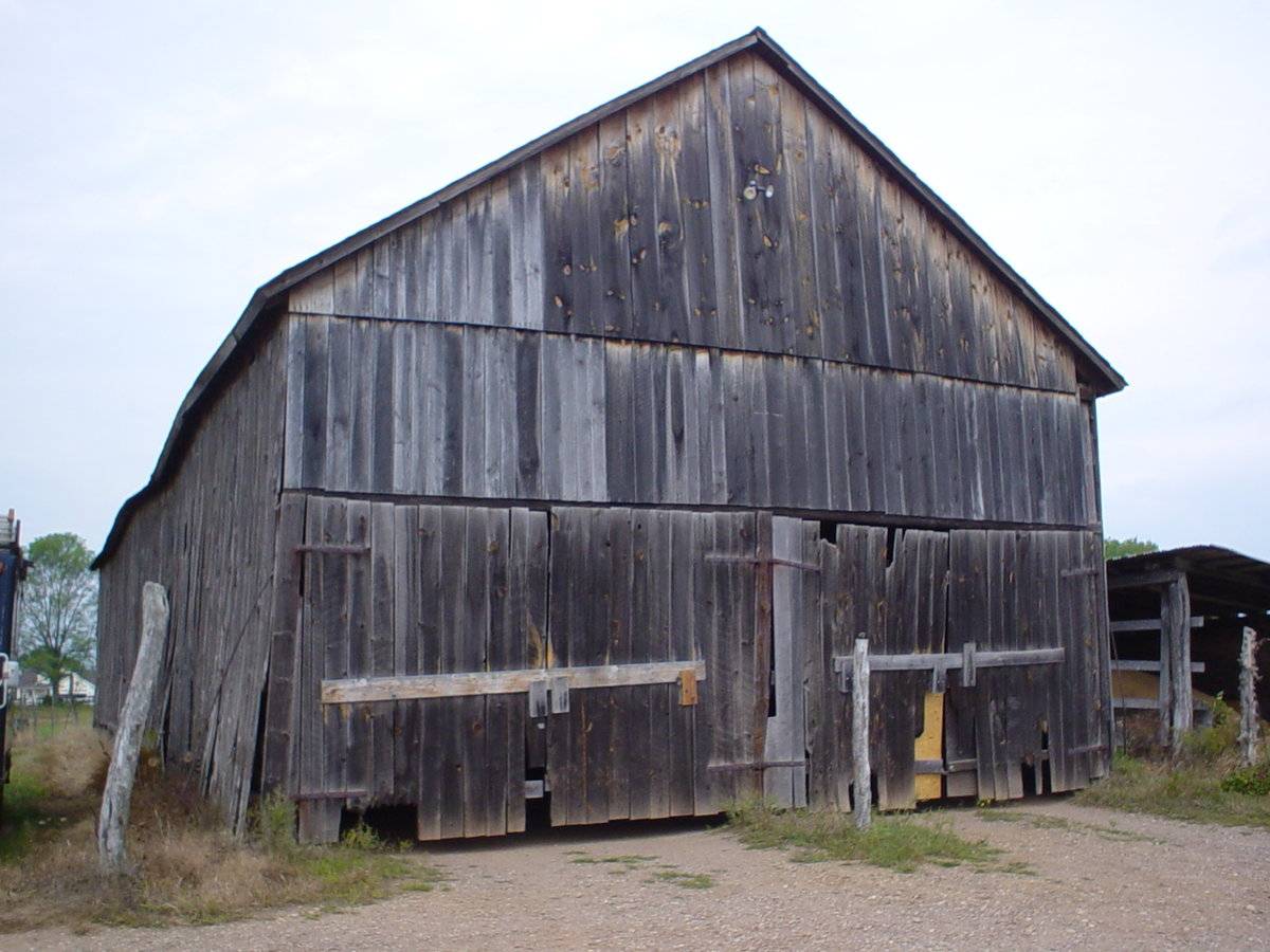 The gable-entry barns, Barn-II and Barn-III, have evidences of additional ventilation through their siding which suggests their original usage as tobacco sheds.