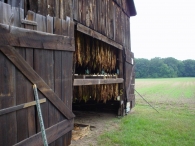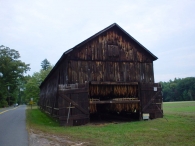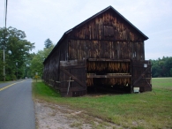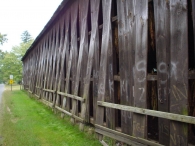 The tobacco barn, or shed as it is called in the Connecticut River Valley, is one of the most distinctive of the single-crop barns. They tend to be long, low windowless buildings with pitched roofs. They are characterized by vented sides to regulate air flow and allow harvested tobacco to cure at the appropriate rate. Derived initially from the design of the English barn, the shed is composed of a fixed skeleton consisting of two- or three-aisle bents repeated at intervals of 15 feet to the desired length. The wood-framed bents sit on piers of stone or concrete and the bents are connected by girts and diagonal braces. Typically there are two doors at each end, making the shed a “drive-through,” although some sheds are accessed through doors on the sides. The interior structural framework serves a second purpose in addition to supporting the walls and roof of the building; it provides a framework for the rails used to hang the tobacco as it cures.