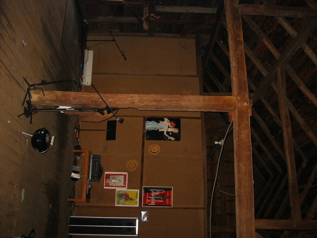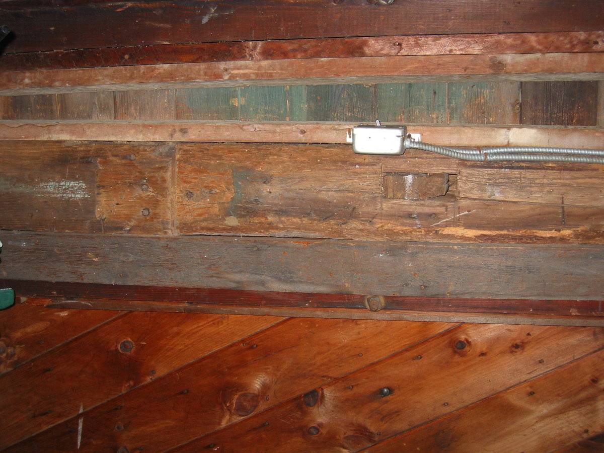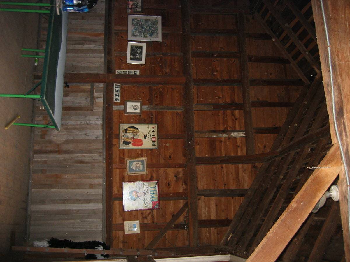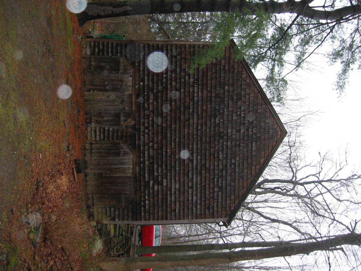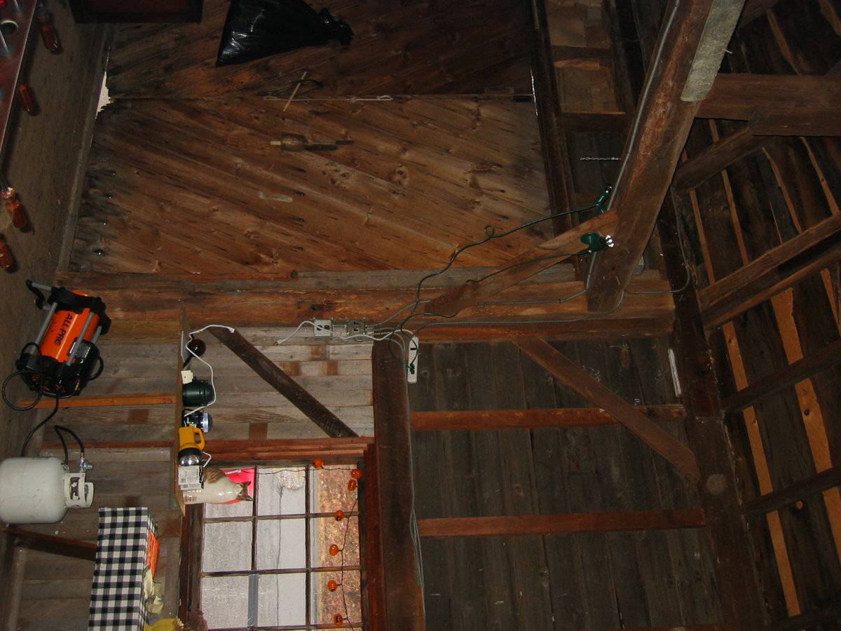 This extended English bank barn is constructed with a hewn and sawn, sqsuare-rule frame with dropped ties and arcade plates. Evidence of the added bay can be seen in the sistering of major timbers and the discontinuous plates.