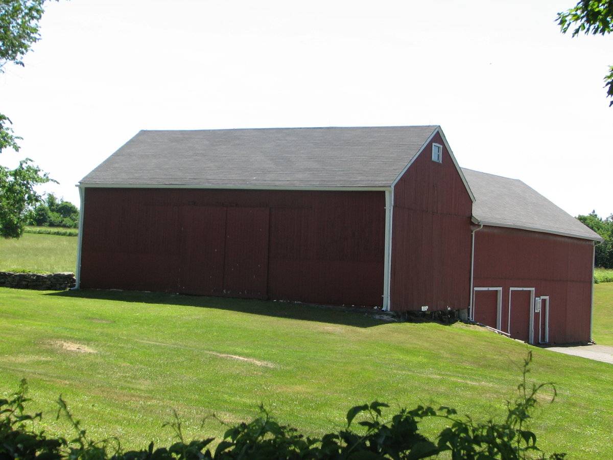 The oldest barns still found in the state are called the “English Barn,” “side-entry barn,” “eave entry,” or a 30 x 40. They are simple buildings with rectangular plan, pitched gable roof, and a door or doors located on one or both of the eave sides of the building based on the grain warehouses of the English colonists’ homeland. The name “30 by 40” originates from its size (in feet), which was large enough for 1 family and could service about 100 acres. The multi-purpose use of the English barn is reflected by the building’s construction in three distinct bays - one for each use. The middle bay was used for threshing, which is separating the seed from the stalk in wheat and oat by beating the stalks with a flail. The flanking bays would be for animals and hay storage.