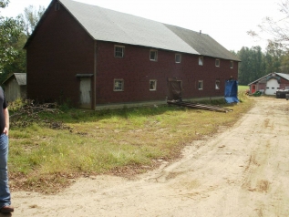 Large gable roofed barn with asphalt shingle siding. Possibly a poultry barn. Barn Surveyors: Katherine Powers, Chris Lee, Emerson McNerney, and Alexsei Magno.