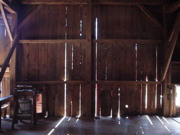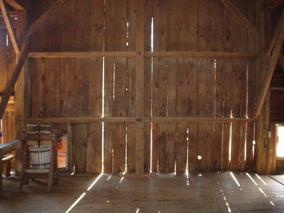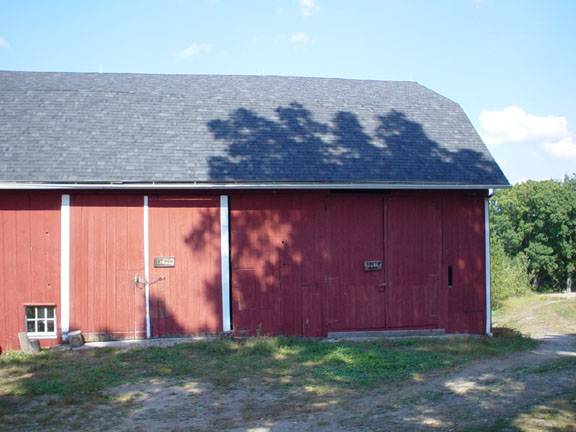 The oldest barns still found in the state are called the “English Barn,” “side-entry barn,” “eave entry,” or a 30 x 40. They are simple buildings with rectangular plan, pitched gable roof, and a door or doors located on one or both of the eave sides of the building based on the grain warehouses of the English colonists’ homeland. The name “30 by 40” originates from its size (in feet), which was large enough for 1 family and could service about 100 acres. The multi-purpose use of the English barn is reflected by the building’s construction in three distinct bays - one for each use. The middle bay was used for threshing, which is separating the seed from the stalk in wheat and oat by beating the stalks with a flail. The flanking bays would be for animals and hay storage.