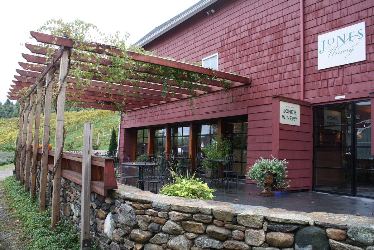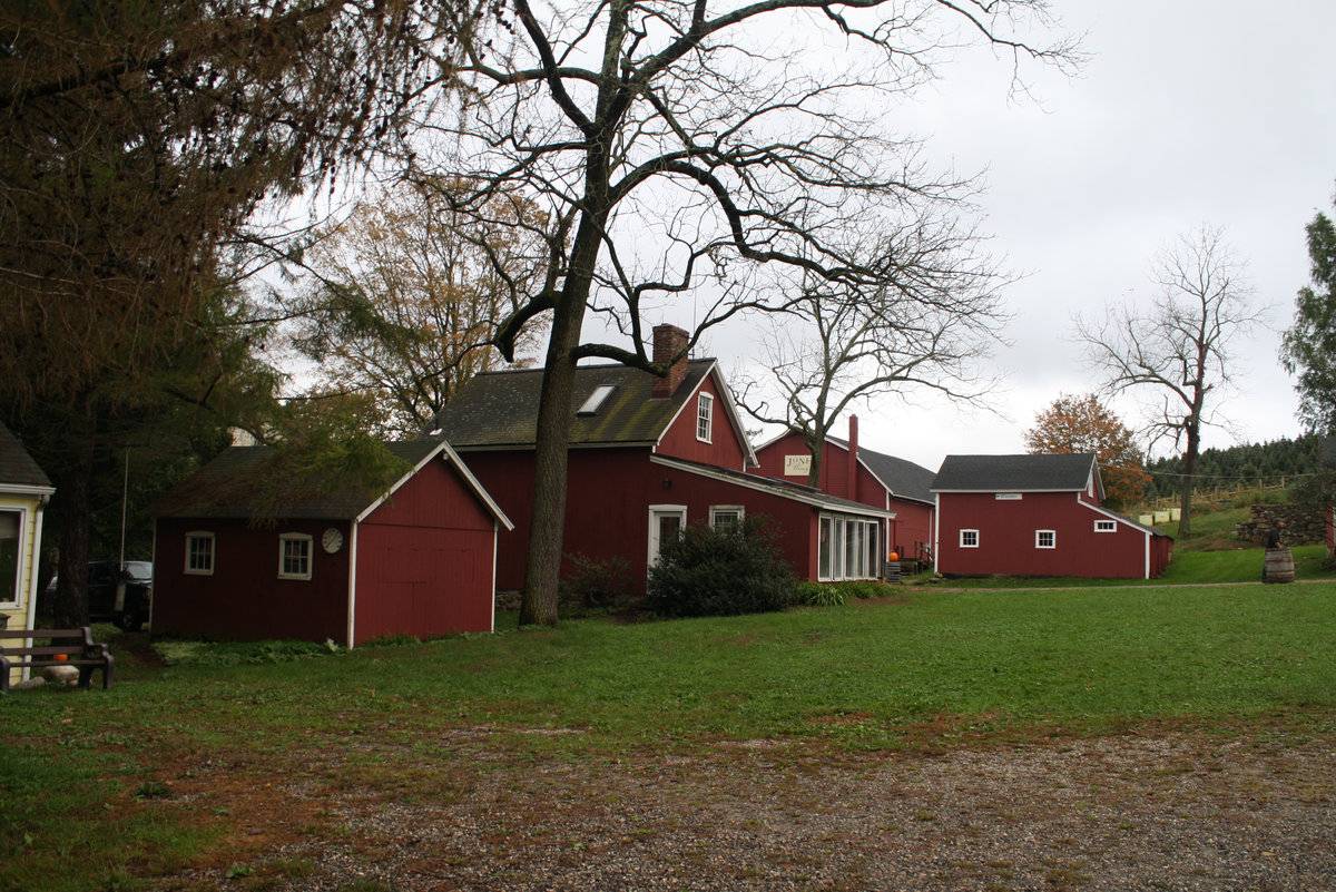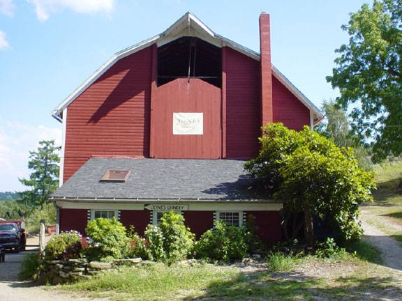 Listed on the State Register of Historic Places 2/06/2013 This barn provides a good example of how different framing styles can be joined together in a seamless way as well as a prime opportunity to compare the two basic approaches to framing a barn. The main barn is one of an extensive complex of agricultural structures on multiple sites. Note: some photographs labeled as 266 Walnut Tree Hill Road or 266 Israel Hill Road (alternate street name). Main dairy barn convered to wine tasting room in 2008. Historical information from Jones Family Farm: Philip James Jones, a Welsh-Irish immigrant, began working his land in the White Hills of Shelton in the 1850s. He was a butcher and raised sheep and cattle. From his horse-drawn cart, he sold meat, potatoes, and eggs in the city of Derby. His advice still guides the Jones family farmers. In the late 1800s, his son and grandson established a dairy farm, Broad Acres Farm, with 30 cows and 300 acres. After World War II, fourth generation, Philip and Elisabeth Jones began inviting friends to harvest their own Christmas trees on the family's dairy farm. Families had so much fun that more trees were planted and the dairy business was discontinued in 1966. Today, fifth generation Will, Terry, and Jean Jones, manage the farm along with the sixth generation, Jamie and Christiana Jones. They look after 400 acres of strawberries, blueberries, pumpkins and Christmas trees. Jamie planted vineyards and established the Jones Winery in 2004.