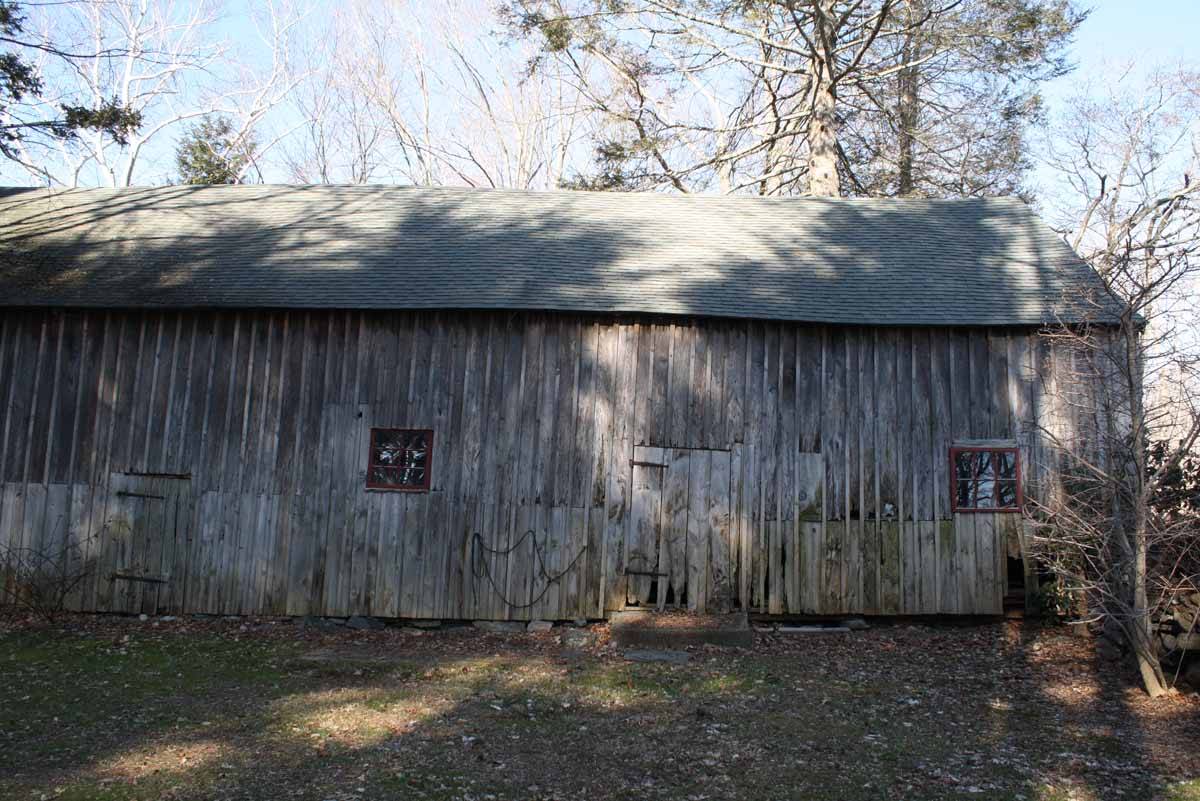 “A long gable-roofed barn is located south of the house, with its east end as close to the road as is the house itself. The barn is of post-and-beam mortise-and-tenon construction, contemporary with the house. A small perpendicular ell at the west end of the barn was a former open carriage shed, now closed in.”