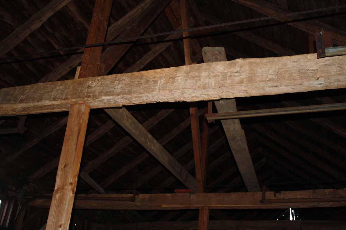 This barn [editor: perhaps] dates back to the first half of the 18th century. It was particularly well constructed of high quality timber. All the members of the frame are hewn square. There are no half logs smoothed only on one side which are common in barns of lesser quality. It dates back to the beginning of the Warner legacy with the property. It retains much of its original fabric.