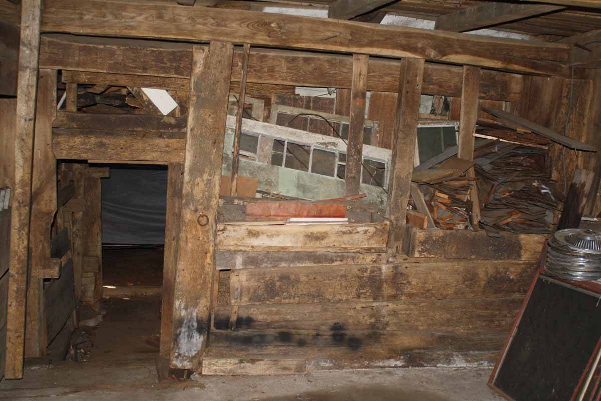 The ell to the north rear is from the 20th century and constructed of dimensional and recycled lumber. While it is not particularly significant, it was extant during the Palmer ownership and offers more dry storage space. It is 18’9” front to back and 32 1/2’ wide. The roof is shorter in the front than the back and not very steeply pitched.