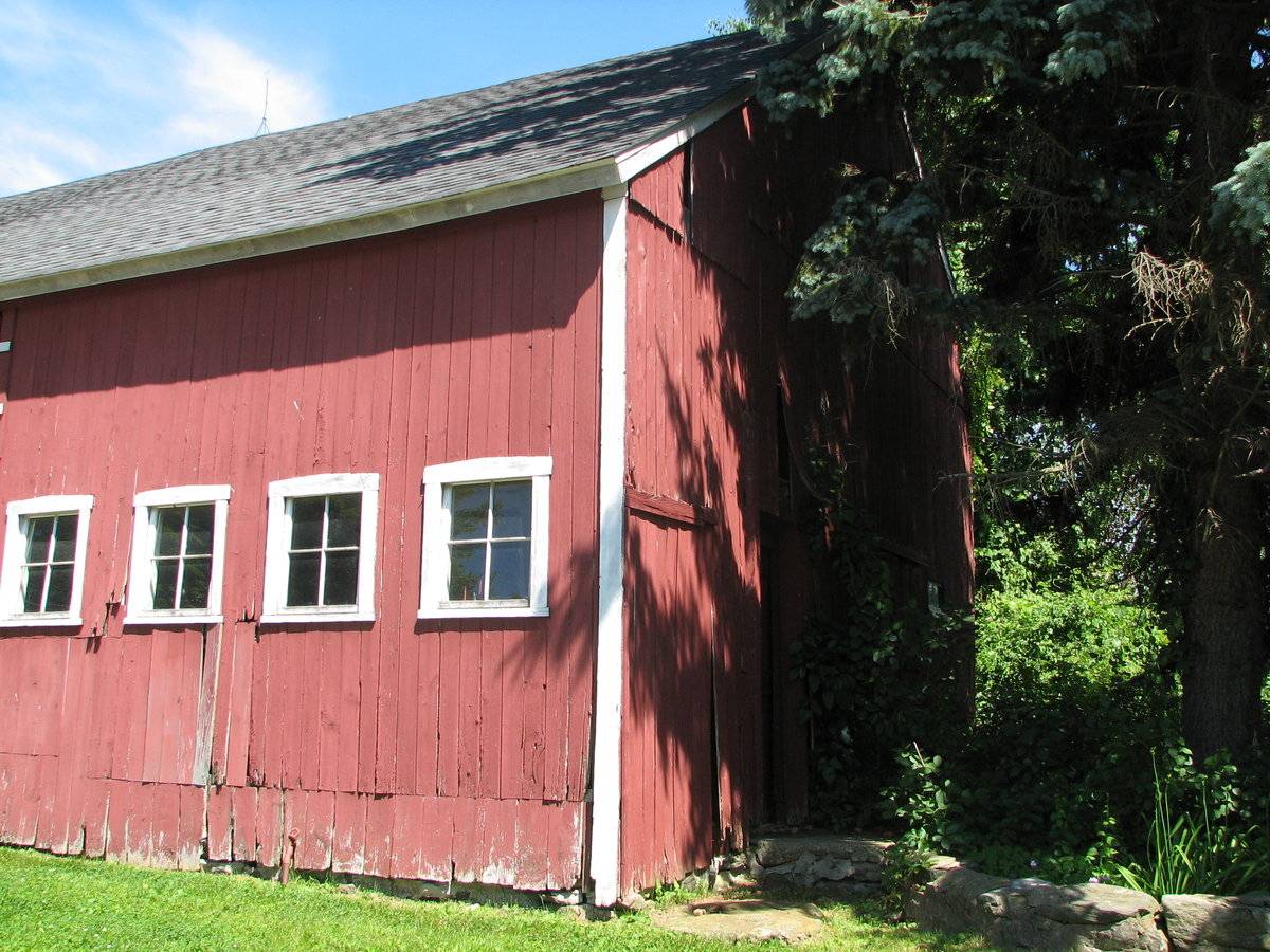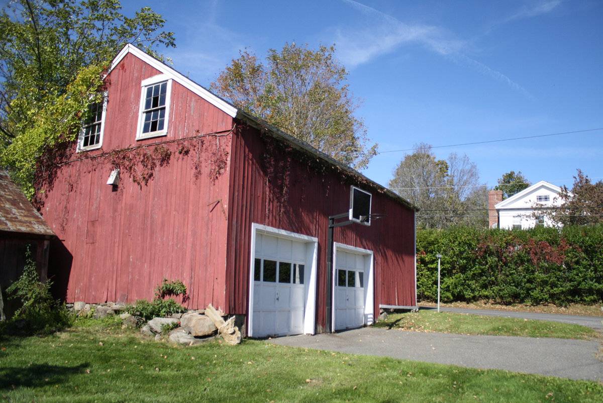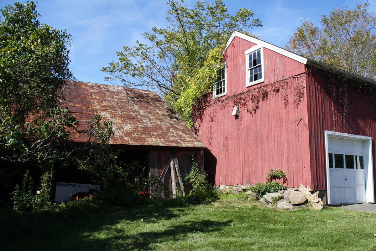 The oldest barns still found in the state are called the “English Barn,” “side-entry barn,” “eave entry,” or a 30 x 40. They are simple buildings with rectangular plan, pitched gable roof, and a door or doors located on one or both of the eave sides of the building based on the grain warehouses of the English colonists’ homeland. The New England barn or gable front barn was the successor to the English barn and relies on a gable entry rather than an entry under the eaves. The gable front offers many practical advantages. Roofs drain off the side, rather than flooding the dooryard. Although it was seen by many as an improvement over the earlier side entry English Barn, the New England barn did not replace its predecessor but rather coexisted with it. In this case the two styles are combined; both a gable entry and an eave entry are used.