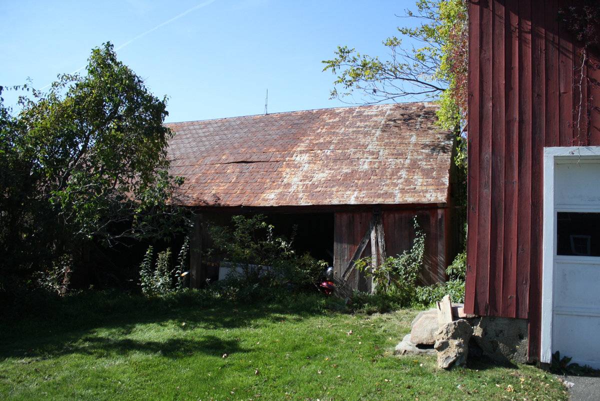 that was probably added in the early to mid-1900s. This barn is one of three barns associated with 329 Painter Hill Road at the intersection of Cross Brook Road.