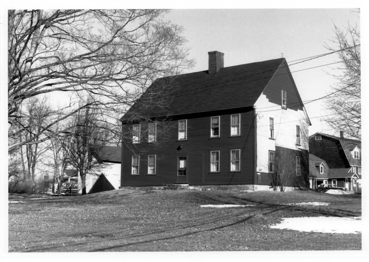 Columbia Green NR Historic District Inventory description: ELEAZAR WHEELOCK HOUSE, c.1735, 2 1/2 stories, clapboarded, 5-bay facade, brick central chimney (probably not original), Victorian windows. Small board-sided 19th-century barn to rear (Photograph 3).