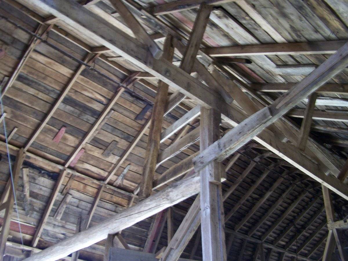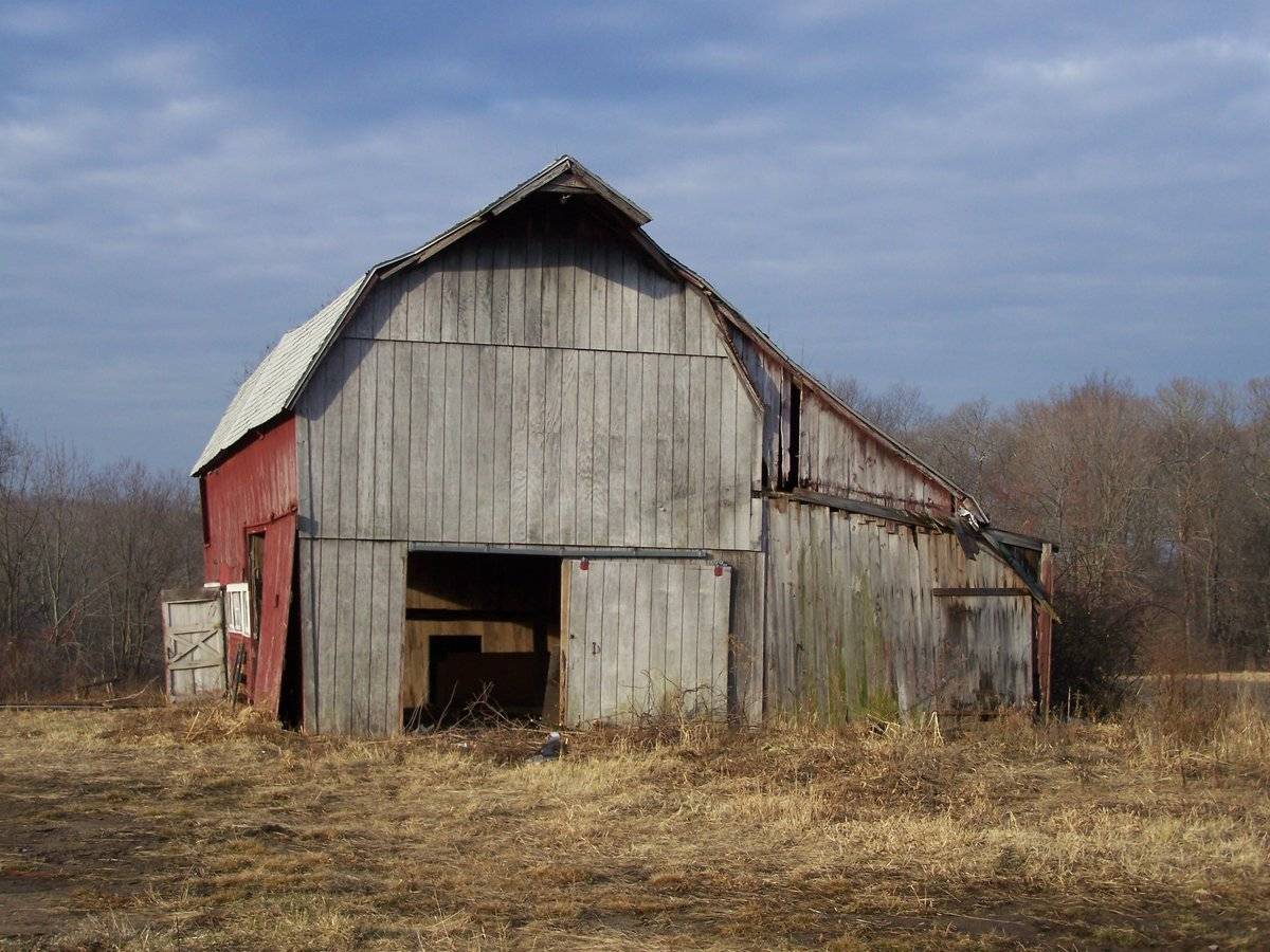 The oldest barns still found in the state are called the “English Barn,” “side-entry barn,” “eave entry,” or a 30 x 40. They are simple buildings with rectangular plan, pitched gable roof, and a door or doors located on one or both of the eave sides of the building based on the grain warehouses of the English colonists’ homeland. The name “30 by 40” originates from its size (in feet), which was large enough for 1 family and could service about 100 acres. The multi-purpose use of the English barn is reflected by the building’s construction in three distinct bays - one for each use. The middle bay was used for threshing, which is separating the seed from the stalk in wheat and oat by beating the stalks with a flail. The flanking bays would be for animals and hay storage.