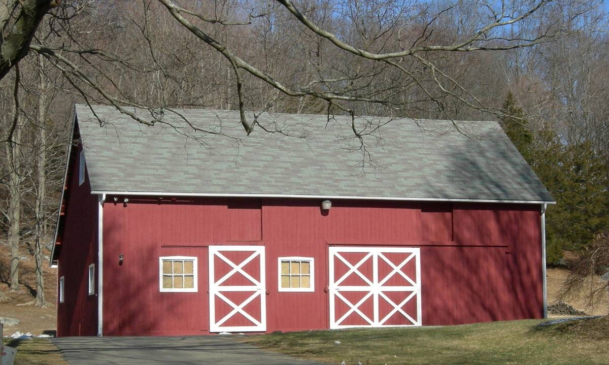 The oldest barns still found in the state are called the “English Barn,” “side-entry barn,” “eave entry,” or a 30 x 40. They are simple buildings with rectangular plan, pitched gable roof, and a door or doors located on one or both of the eave sides of the building based on the grain warehouses of the English colonists’ homeland. The name “30 by 40” originates from its size (in feet), which was large enough for 1 family and could service about 100 acres. The multi-purpose use of the English barn is reflected by the building’s construction in three distinct bays - one for each use. The middle bay was used for threshing, which is separating the seed from the stalk in wheat and oat by beating the stalks with a flail. The flanking bays would be for animals and hay storage.