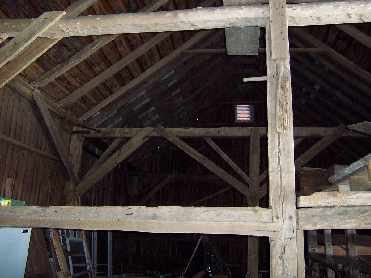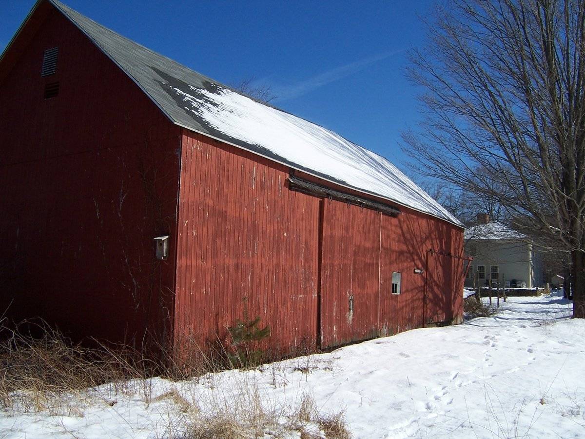 The oldest barns still found in the state are called the “English Barn,” “side-entry barn,” “eave entry,” or a 30 x 40. They are simple buildings with rectangular plan, pitched gable roof, and a door or doors located on one or both of the eave sides of the building based on the grain warehouses of the English colonists’ homeland. The name “30 by 40” originates from its size (in feet), which was large enough for 1 family and could service about 100 acres. The multi-purpose use of the English barn is reflected by the building’s construction in three distinct bays - one for each use. The middle bay was used for threshing, which is separating the seed from the stalk in wheat and oat by beating the stalks with a flail. The flanking bays would be for animals and hay storage.