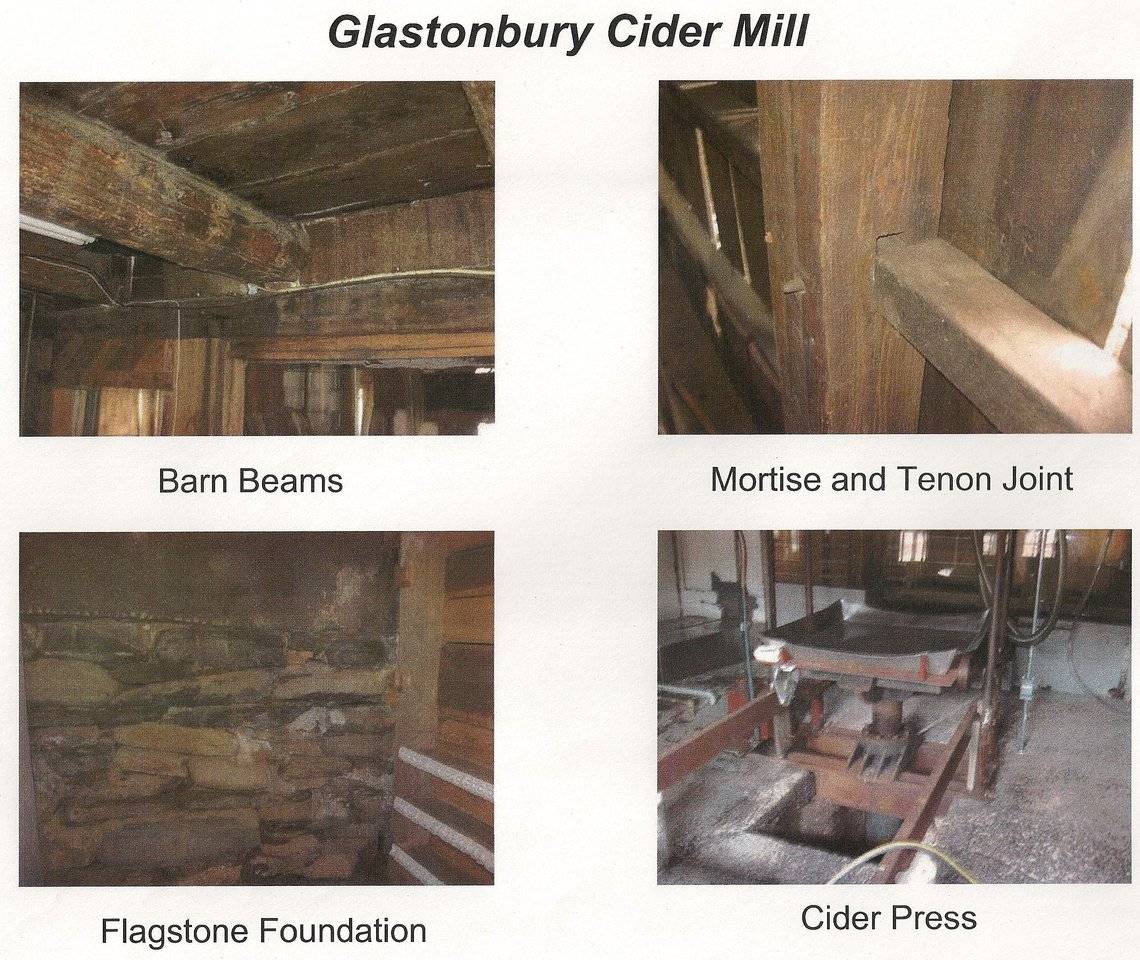 2008 Barn Grant Recipient The lower level of the mill has a cider pressing operation and a small retail shop, with a concrete storage vault towards the west and lean-to-sheds on the east and south sides. The main level contains some equipment related to the cider pressing with a storage loft added above in two levels. According to the research carried out for feasibility studies (Barn Grant Application), the first recorded property ownership is dated to 1644 while the first dated mention of the Cider Mill is in 1850. The oldest continuously operating Cider Mill in the United States is located right here in Glastonbury. The property, which is leased to local farmers, continues to be used for agriculture. Crops, include apples, peaches, berries, green peppers, tomatoes, asparagus, and many others. The Cider Mill is open seasonally, August-October and serves as a farmers market featuring a bountiful delegation of locally grown organic fruits and vegetables. Hay rides and a petting zoo are generally available after Labor Day. Source: http://www.glasct.org/index.aspx?page=188 National Register Historic District.