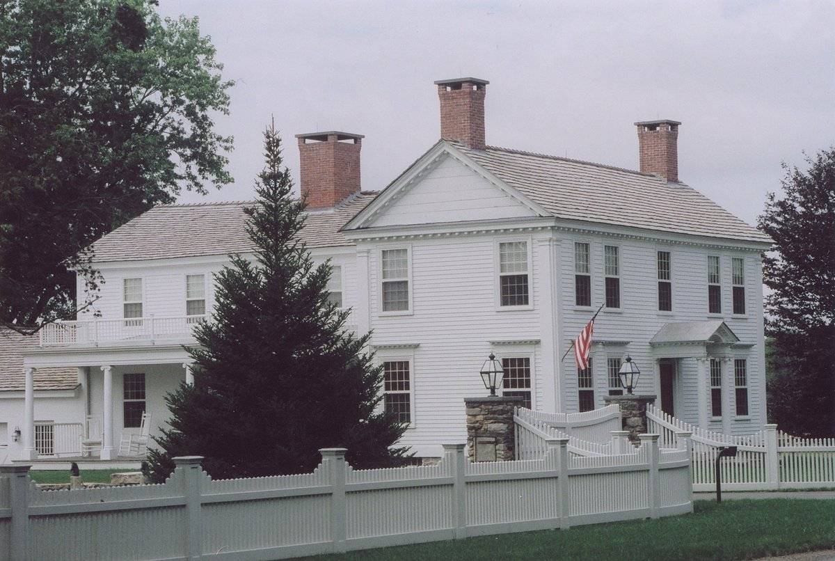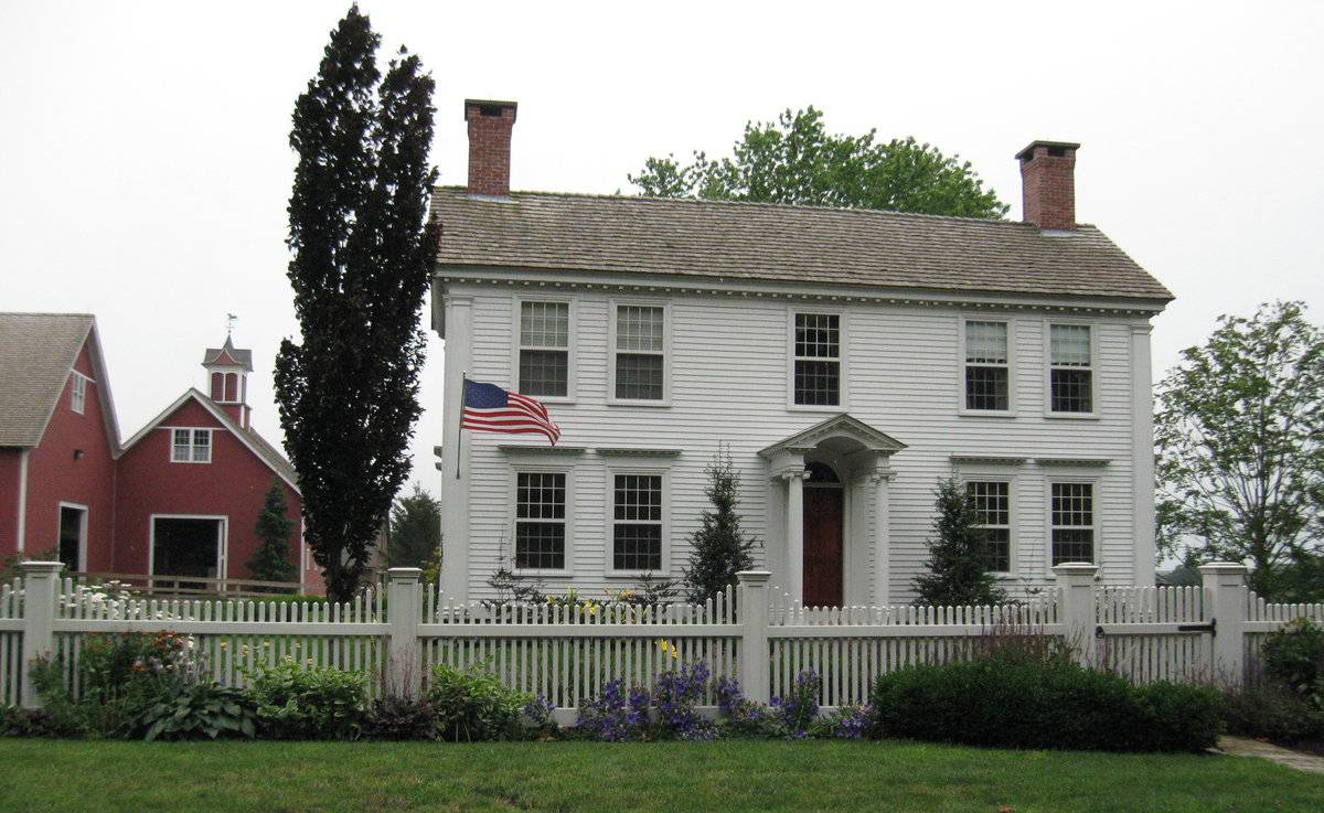 The farmhouse is a c. 1815 1 ½-story center-hall Colonial style building with Federal details, and has a gable roof oriented with the ridgeline east-west parallel to South Street. The north eave-side is a five-bay façade with the entry door in the center under a small 1-story porch. A 2 ½-story wing extends south from the rear and has a 1-story porch along the east eave-side. A small gable-roofed addition to the south connects to a garage, recently constructed using an antique building frame relocated from its original site.