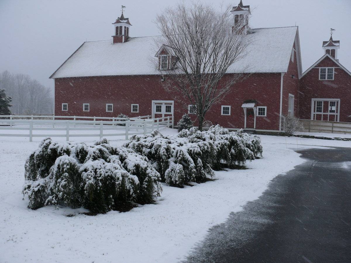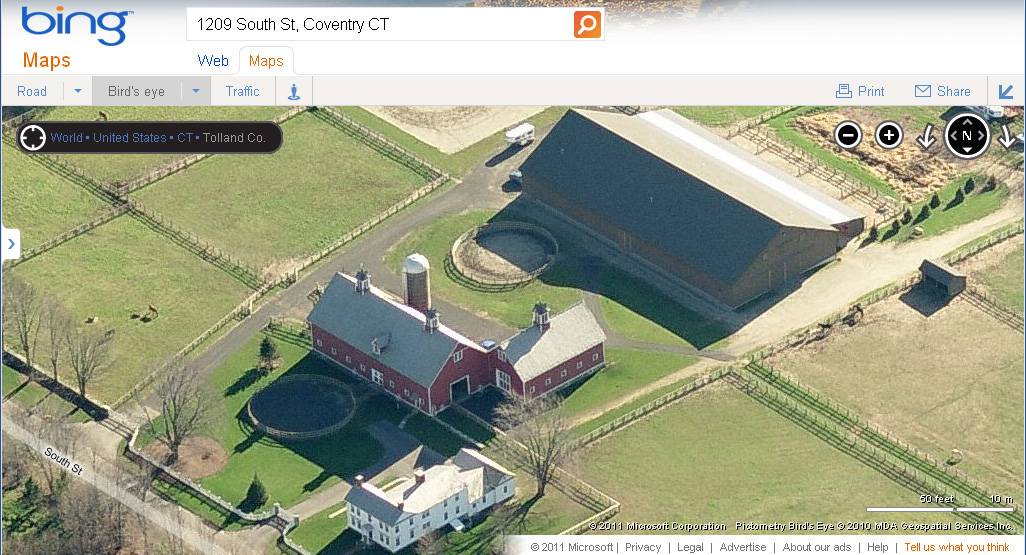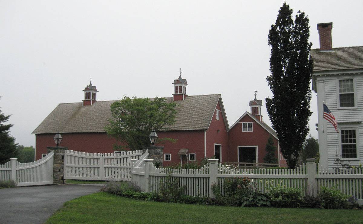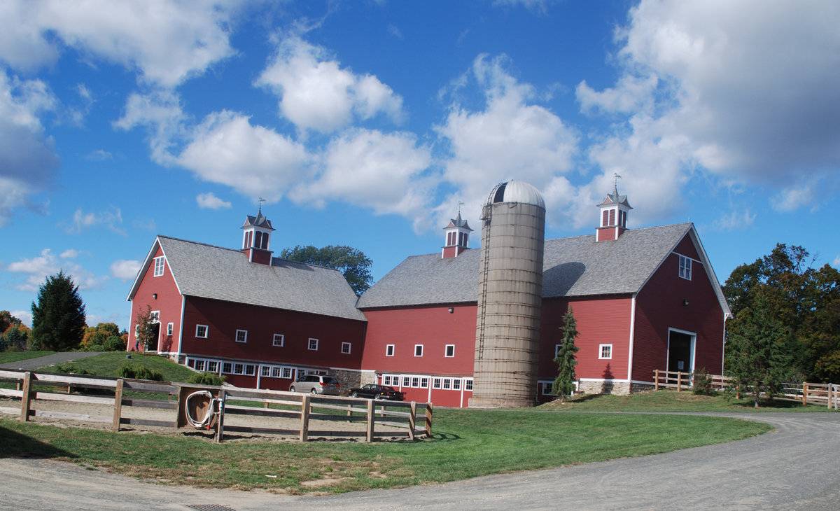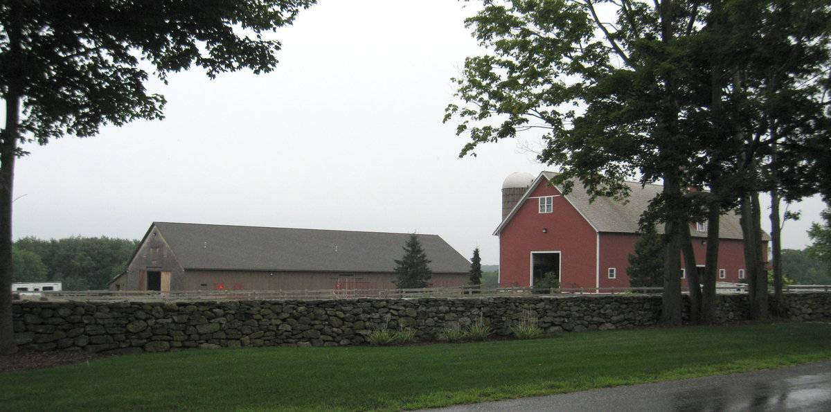 Listed on the State Register of Historic Places 5/01/2013 Owners' notes: We recently restored the barns that were built in 1899 by Henry Dimock, who left funds to the Town of Coventry to build an addition to their Library. We also restored the house that was built between 1809 and 1815. It was built for the Rev. Chauncey Booth and his wife, Laura Farnum. We had a genealogy done on the property and all can be verified. Both structures are magnificent but esp. the barns. Attached are pictures of both house and barns before and after the restoration work. The barns were built in 1899 by Henry Farnum Dimock, to house twelve imported prize cows. Mr. Dimock, owned over time, several large farms in Coventry. As an adult he lived and practiced law in New York City and summered in Coventry. The farm changed ownership over the many years. It eventually was purchased in 1946 to be used as a dairy farm. It remained a dairy farm until sold in 2001, at which time major renovations were made. It is currently being used as a horse breeding facility ( www.crossenarabians.com ). The property also includes 92 acres of land. Approximately, half of the acreage is fields used for both pasture and to produce hay. This large, 2 1/2-story gable-entry bank barn has recently been restored and painted red. It has a fieldstone foundation and is covered in vertical clapboards. Two new windows sit under the apex of the east gable where the hay loft doors would have been. Under grade are two rows of horse stalls on the outside wall separated by a hall. There are sliding doors on the south side of the under grade wall allowing horse to enter and exit. The sliding doors as well as all of the window trim and other doors on this barn are highlighted with white paint. There are a row of windows on each of the eave sides of the barn above grade for light and ventilation. The barn roof is covered in asphalt shingles, has two rebuilt cupolas along the apex of the roof and on the north side of the roof is a dormer. A second smaller barn is attached at the southwest corner and is nearly identical in every way except size and number of cupolas; the smaller barn has just one. There is a poured concrete silo on the south eave side of the larger barn. The large barn (I) is 104' long by 46' wide and 46' high, and has the capacity of holding 10,000 bales of hay in the hayloft. The center aisle of the large barn is fifteen feet wide. The roof rafters are 46' long in the hayloft. The smaller conjoined barn (II) is 60' long X 30' wide x 42' high with a twelve foot wide center aisle. Property includes 92 acres, now used for horse farm. Cupola restoration - quote from owner: "We had a picture given to us by a prior owner that my husband had spoken to about the farm. He was 96 years old at the time. He had done a study on the farm when he was a young man attending UCONN. The picture shows the original cupolas, which we had reproduced exactly, with the exception of the size. On the large barn, there was only one huge one instead of the two we had made. It wasn't feasible to make the one large one, plus I don't know how we would have gotten it up there. The one on the smaller barn is the same size."