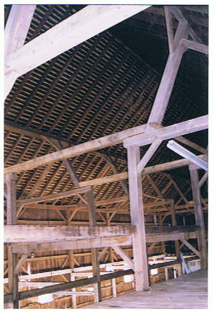The New England barn or gable-front barn was the successor to the English barn and relies on a gable entry rather than an entry under the eaves. The gable front offers many practical advantages. Roofs drain off the side, rather than flooding the dooryard. With the main drive floor running parallel to the ridge, the size of the barn could be increased to accommodate larger herds by adding additional bays to the rear gable end. Although it was seen by many as an improvement over the earlier side entry English Barn, the New England barn did not replace its predecessor but rather coexisted with it.