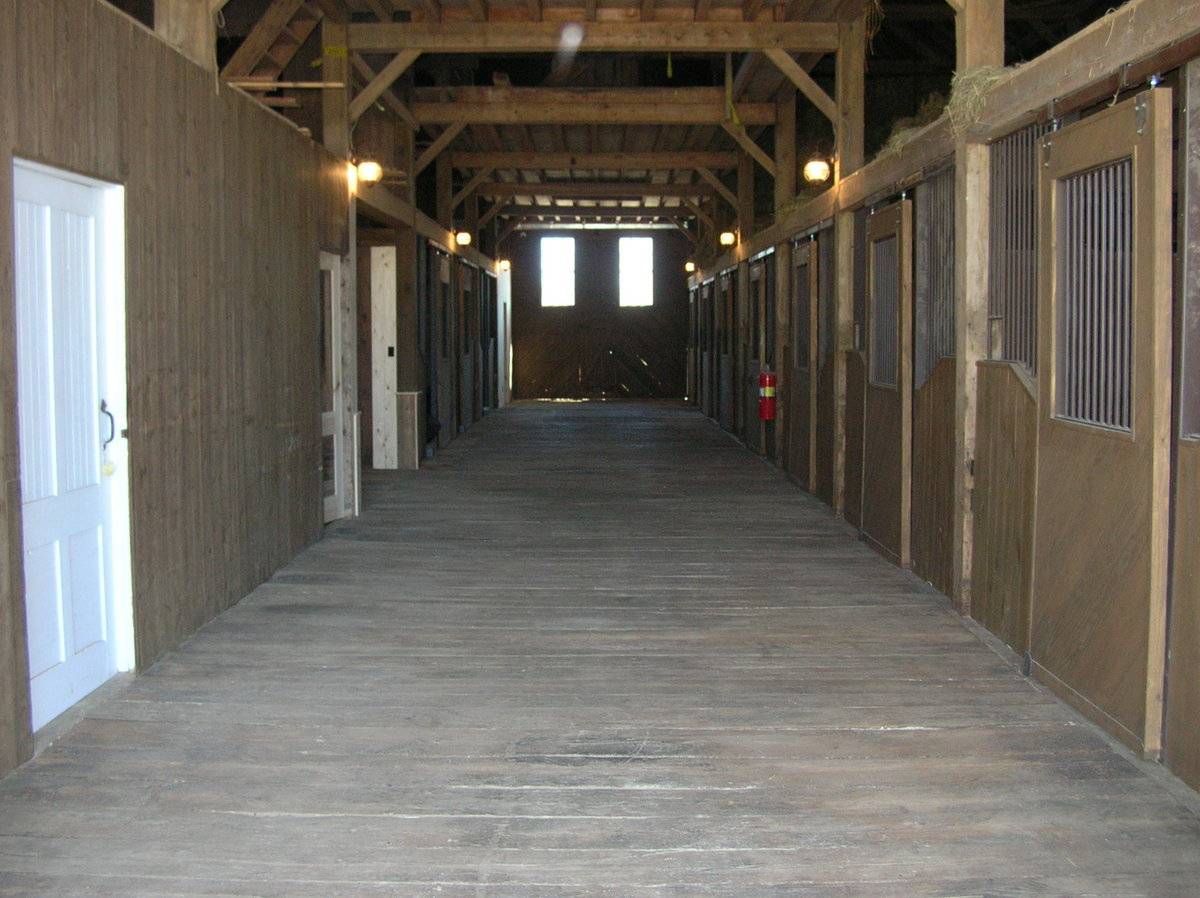 Barn I: 104 ft x 46 ft x 46 ft high. Barn II: 60 ft x 30 ft x 42 ft high.